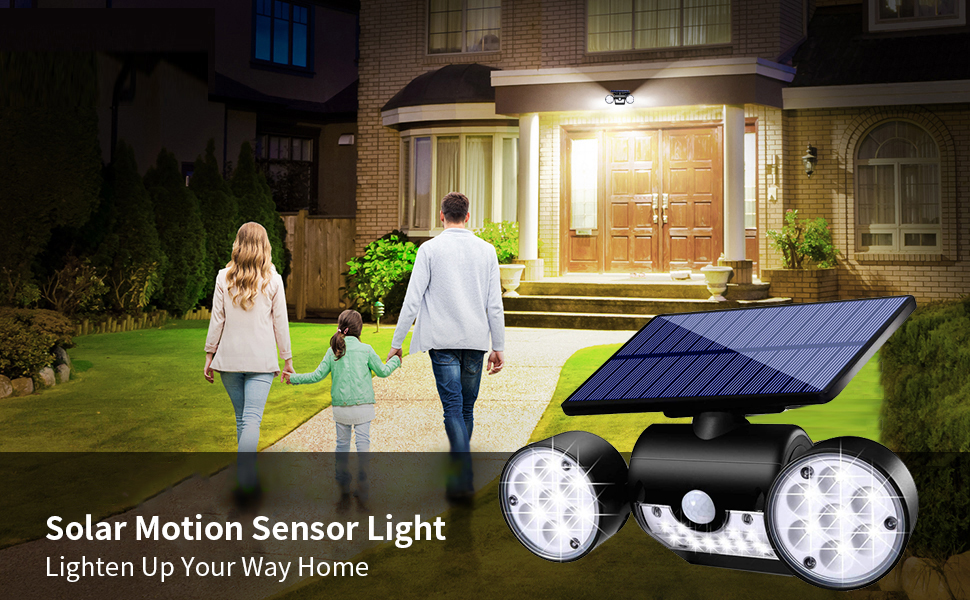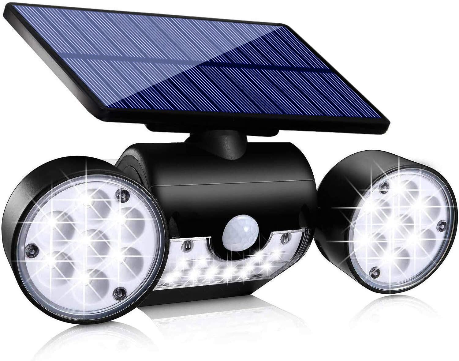 Solar Lights Outdoor, Motion Sensor Security Lights Solar Wall Lights with Dual Head Spotlights LED Waterproof 360° Adjustable Solar Motion Lights Outdoor for Garden Garage Patio, 1 Pack