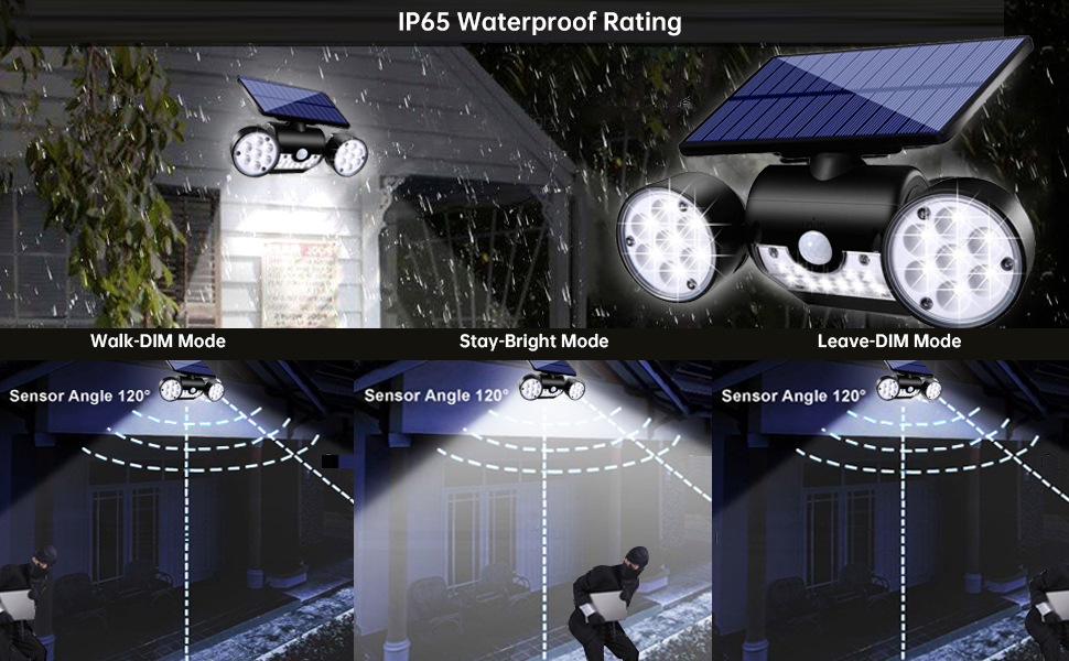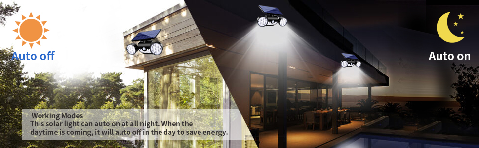 There are 360° solar panels and 360° rotatable spotlights, which can cover a wide area.